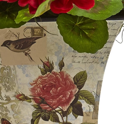 This pair of Geraniums is bold and beautiful. Its bright colored petals and green leaves create contrast with the muted colors on the floral planter. The intricacy of the Geranium’s petals adds texture and depth to the arrangement. Perfect for end tables, bookshelves, night tables, and more.