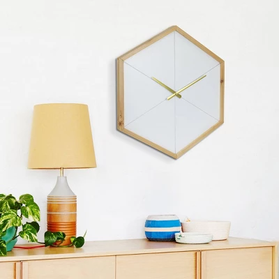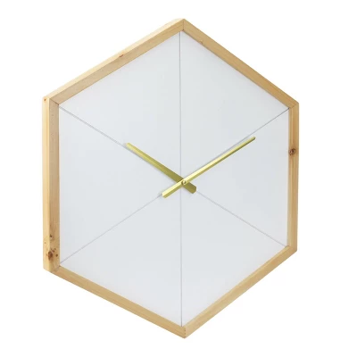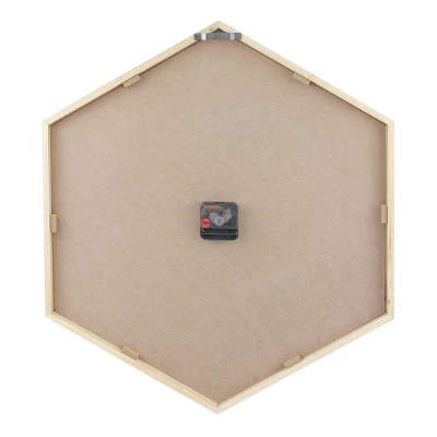 Add a touch of modern flare to your home decor with a Stonebriar 23.6″ x 19.6″ decorative geometric wood wall clock. This clock features a blonde wood geometric frame with a white clock face for a clean modern feel. Clock comes with attached keyhole hanger and is easily installed with a screw or wall hook (not included). Clock measures 23.6 inches by 19.6 inches and is the perfect size for over the mantel or as an accent for your kitchen, bedroom, office, or living room. Decorative clock is battery operated and requires a single AA battery (not included).