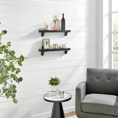 The structural appeal of the Danya B. 24″ Floating Display Ledge Wall Shelves (set of 2) makes it a great addition to both traditional and transitional spaces. With a flowing silhouette that exudes traditional beauty, this set of 2 ledge shelves are crafted from durable wood finish. Curvaceous ogee edges heighten the traditional appeal while also adding elegant curves to the pieces. The top shelves provide just enough space for your books, picture frames or memorabilia. Perfect for hanging in your living room or bedroom for more storage and display space. This set of two shelves is available in White or Black to best match your existing decor and style. Dimensions: 23.5″ long x 3.875″ deep x 4″ high.
