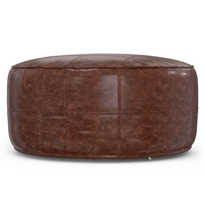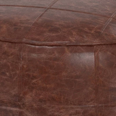 Make a tasteful addition to your home décor with the Darian Round Coffee Table Pouf. The pouf is upholstered in a distressed look aniline-dyed genuine buffalo leather that wears and softens over time. Perfect size for a coffee table, stand-in footrest or spare seating. This versatile pouf is sure to enhance the style of your space.