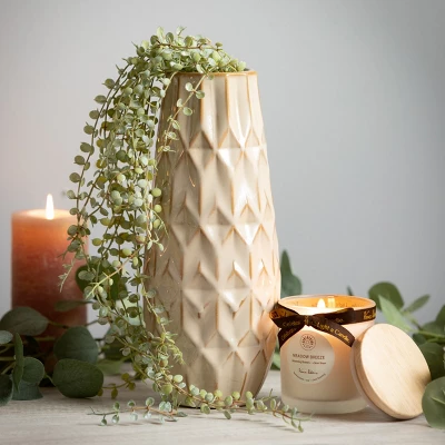 Meadow Breeze is a highly fragranced, clean-burning, vegan, scented candle with a luxurious well-balanced, delicate blend of subtle white flowers, budding tulips and the soft powdery scent of fresh laundered linens drying in a soft breeze. Meadow Breeze’s clean linen scent is enhanced by notes of peppery basil, white orchids, lilac, and twist of limes for a classic fragrance. This scented candle transforms the atmosphere of any room with the luxury and opulence of being surrounded by fresh flowers. This lidded glass candle is meticulously crafted from wick to wax, and like other Vance Kitira candles, it is hand-poured, eco-friendly, clean-burning, and virtually smokeless while burning. Our new scented soy candles are highly fragranced for a strong scent throw. It’s also vegan, paraben-free, and phthalate-free. Burn Time, 30 hours. Over the last 55 years, Sullivans has become an industry leader in home decorations. Our brand is rooted in tradition while incorporating modernized trends to keep your home looking up to date with timeless style. Here at Sullivans, we pride ourselves on creating product designs focused on quality and value, ensuring that our customers have access to beautiful products at reasonable price points.