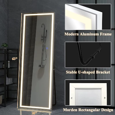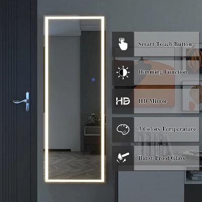 - 【MULTI-FUNCTIONAL LIGHTING】 The LED full length mirror has a smart touch button that allows you to easily switch between 3 different lighting options – yellow light, warm light, and cool light. Additionally, you can adjust the brightness of the mirror to your liking with just a long press of the button.