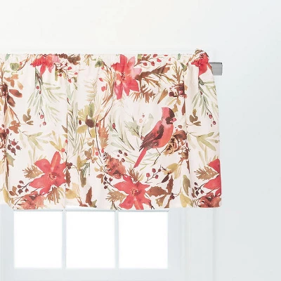 The Averie collection adorns any room with the festive red and green of winter cardinals and evergreen pines. This cotton valance is perfect for a winter garden theme or to complement a Christmas feast!