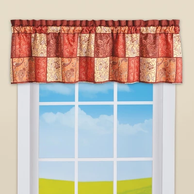 Loaded with seasonal color, this lovely valance features intricate paisley patterns in shades of burgundy, cream and rust. Perfect on its own, you can also use it to top your existing curtains. Rod pocket top makes hanging easy. Machine wash. Polyester; imported. 15″L x 59″W.