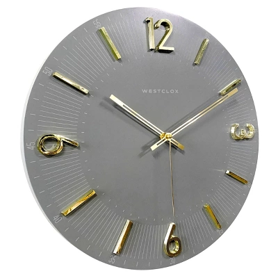 Contemporary Analog 16″ Quartz With Raised Gold Numbers Gray Wall Clock – Westclox