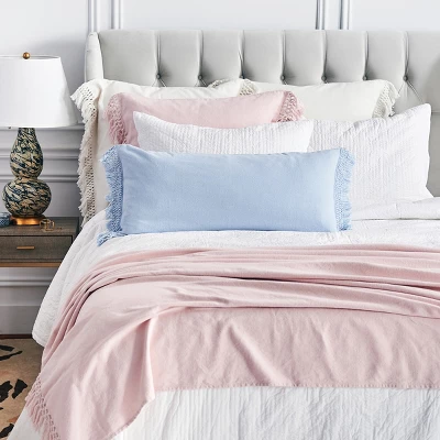 Revel in the sultry softness and delicate details of the Lavato throw from ELISABETH YORK. Enzyme washed and laundered for a luxurious hand, this cotton bed throw features a triple knotted trellis fringe for a chic, sumptuous appeal.