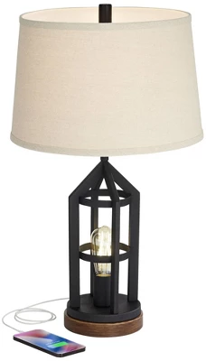 - Set of two industrial table lamps from the Lucas collection by Franklin Iron Works. Each lamp comes with a built-in USB port and nightlight feature in the base.