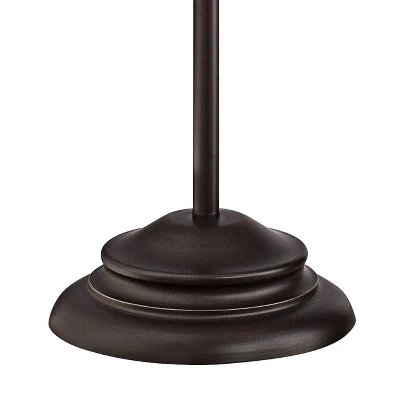 - Dark bronze finish base, pole, and lamp head. Metal construction. 8-foot long cord.