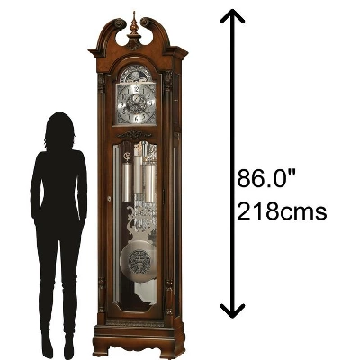 - Carved Hardwood: This USA-crafted clock is made from select hardwoods and veneers. The Hampton Cherry finish is gently distressed to impart an antique look. Carved rosettes and reeded columns with carved Acanthus upper column caps further enhance the handcrafted appearance of this traditional timepiece.