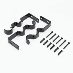 - Steel double rod in black finish with decorative oil rubbed bronze finished finials and matching mounting hardware