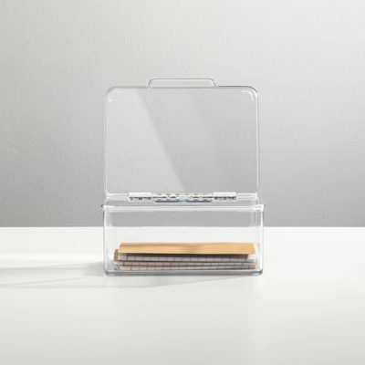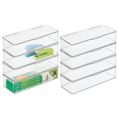 The mDesign office storage organizer bins are perfect for keeping office essentials in one convenient place. Organize pens, pencils, paper clips, staples, sticky notes and more. Convenient and stackable, these deep-capacity bins can be used all over the home, not just in the office! The hinged lids make the bins easy to stack to create vertical, space-saving storage in file cabinets, desk drawers, bookshelves and on desk tops. It’s easy to create the storage solution that works best for you in any room of your home!