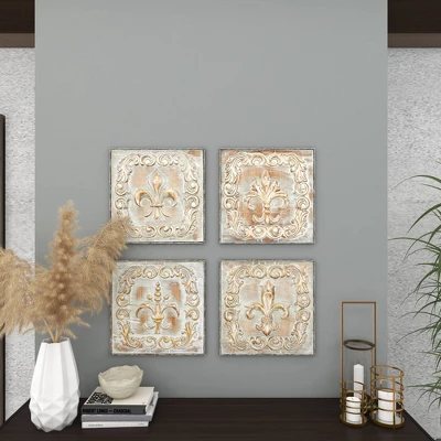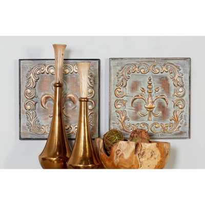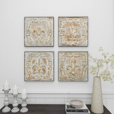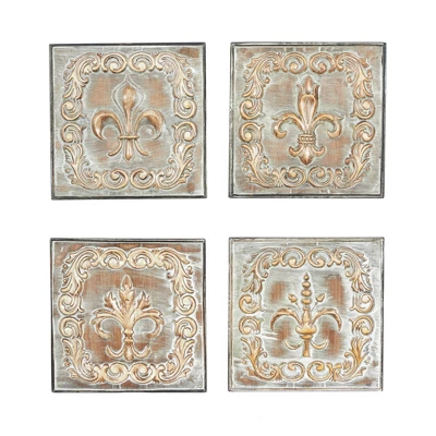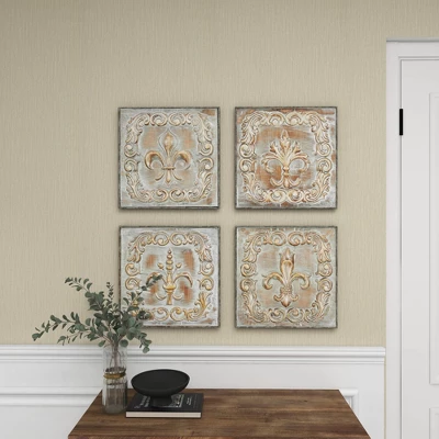 - •Features a set of four ‘Fleur De Lis’ embossed wall sculptures, elegant and versatile to the eye, they can be displayed as a wall decor set or as solo decorations all around the house