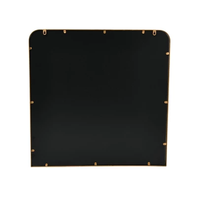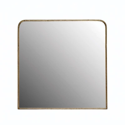 This sleek wall mirror showcases an elegant arched silhouette and frame in a gilded finish; Made from sustainable MDF, glass, and iron; Mirror measures 30″ L x 1″ W x 30″ H; Arched Metal wall mirror in a brass finish; Add style and depth to any living space with this artfully crafted mirror