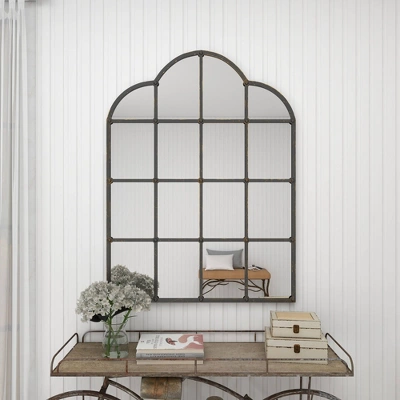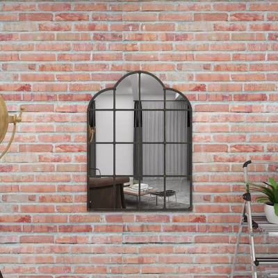 The purpose of a wall mirror, apart from home decoration, is to bounce back outdoor light to a small room to create the illusion of space. Specifically, this wall mirror complements narrow entryways, small industrial-themed bedrooms, hallways, and traditional spaces between rooms. Despite the seemingly light frame, durable materials were used to create it. This is to maintain an elegant feel on product design. This black wall mirror hangs vertically via rectangle ring backing. Suitable for indoor use only. This item comes shipped in one carton.