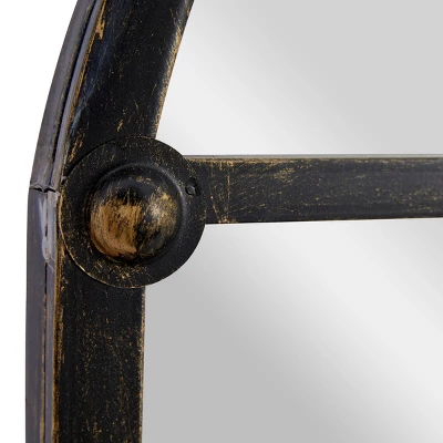 - This crown wall mirror carries a black frame with gold-colored distressing