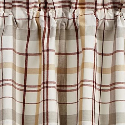 Create a warm and bold statement for your window with this rustic red and beige plaid valance. You will quickly fall in love with the classic appeal this window treatment adds to your home decor with its timeless design. The natural ruffling of the fabric at the top paired with its simple check will create a pretty, country look without having to redecorate an entire room.