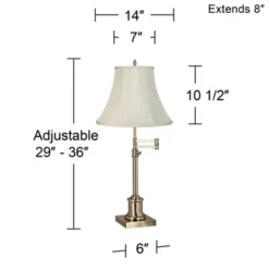 360 Lighting Traditional Swing Arm Desk Table Lamp Adjustable Height 36″ Tall Antique Brass Imperial Creme Fabric Bell Shade Living Room
