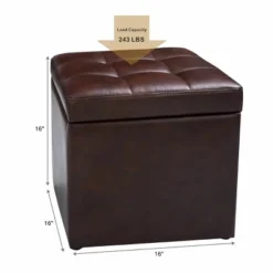 Costway 16”Cube Ottoman Pouffe Storage Box Lounge Seat Footstools With Hinge Top Red Brown