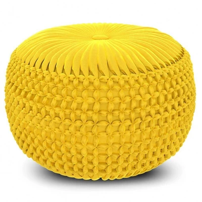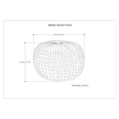 Upholstered in velvet, Vanessa Round Pouf is soft to the touch and comfortable to sit on. Its distinctive detailed design and beautiful rich color adds elegant style to any décor. Beautiful and functional this pouf can be used as an ottoman, an accent piece or casual seating.Efforts are made to reproduce accurate colors, variations in color may occur due to computer monitor and photography.